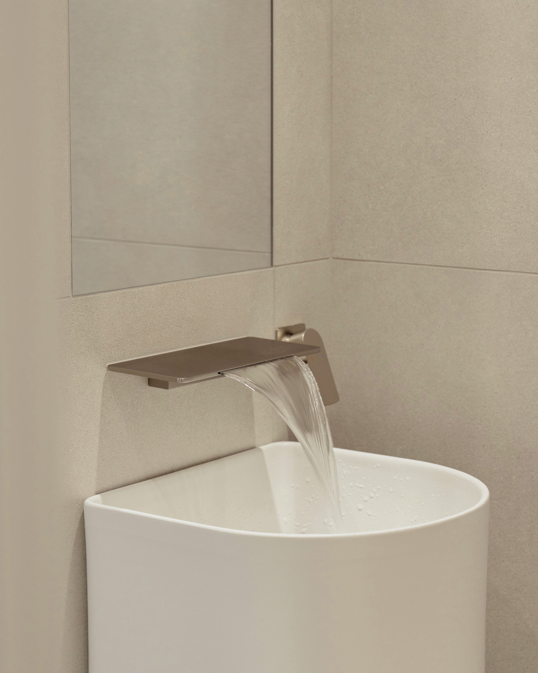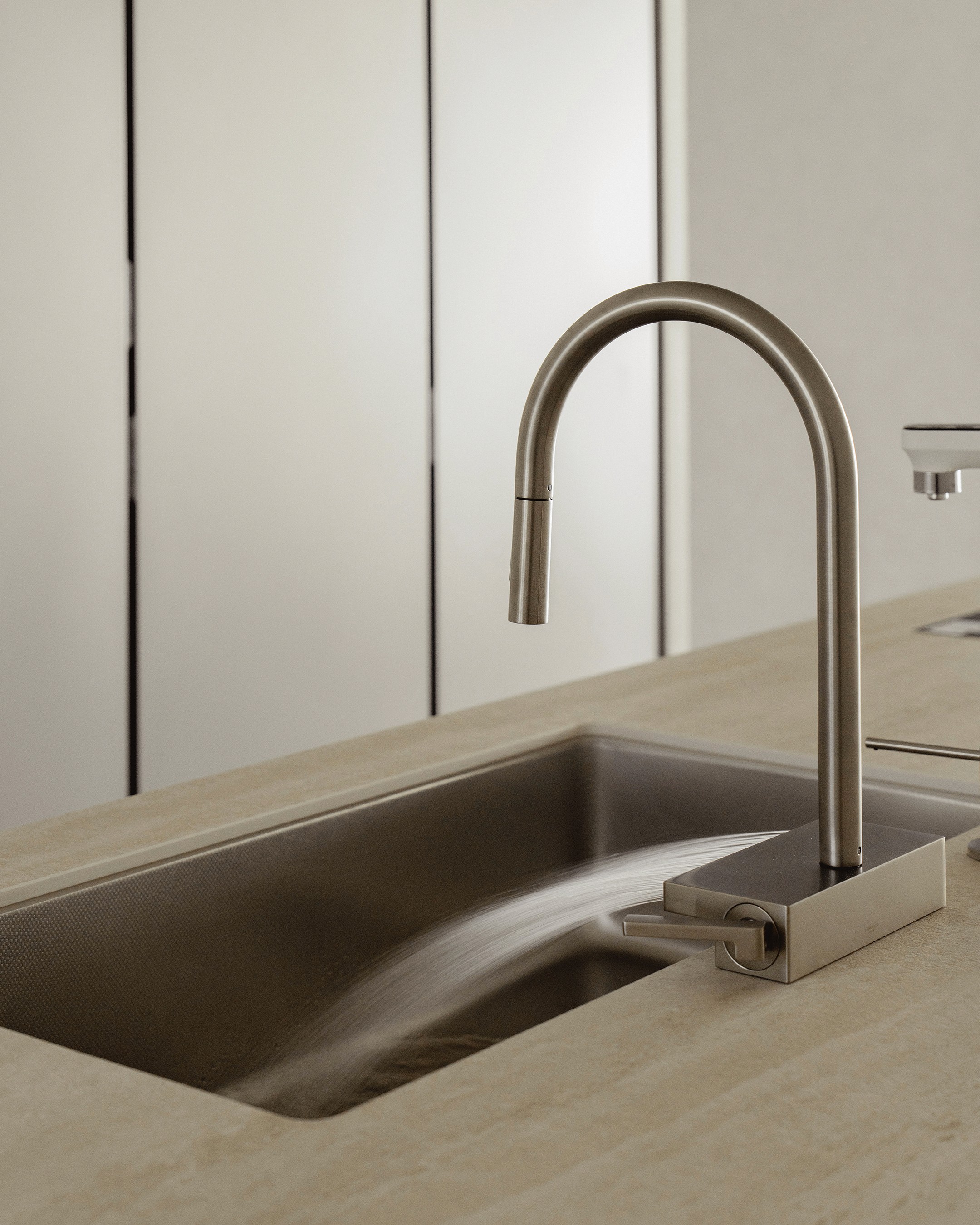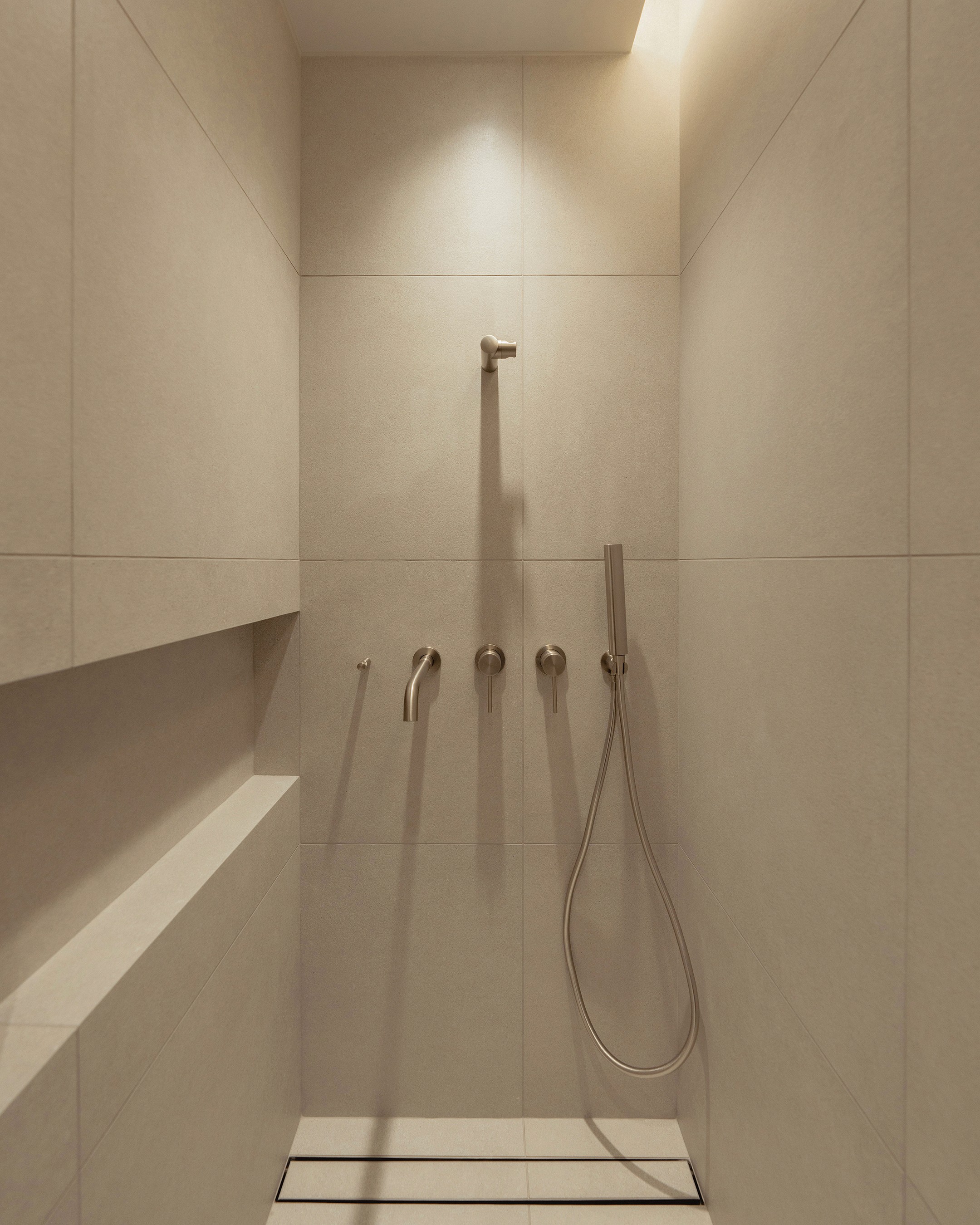 담백하고 구조적인 미감이 돋보이는 공간과 고급스러운 재질간의