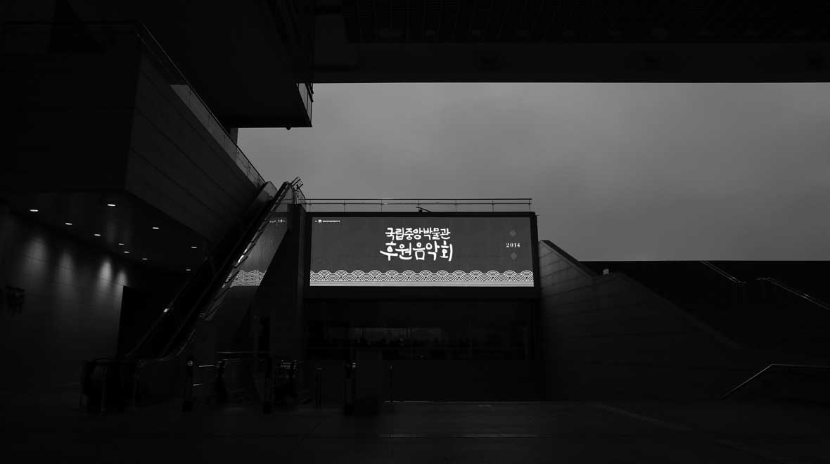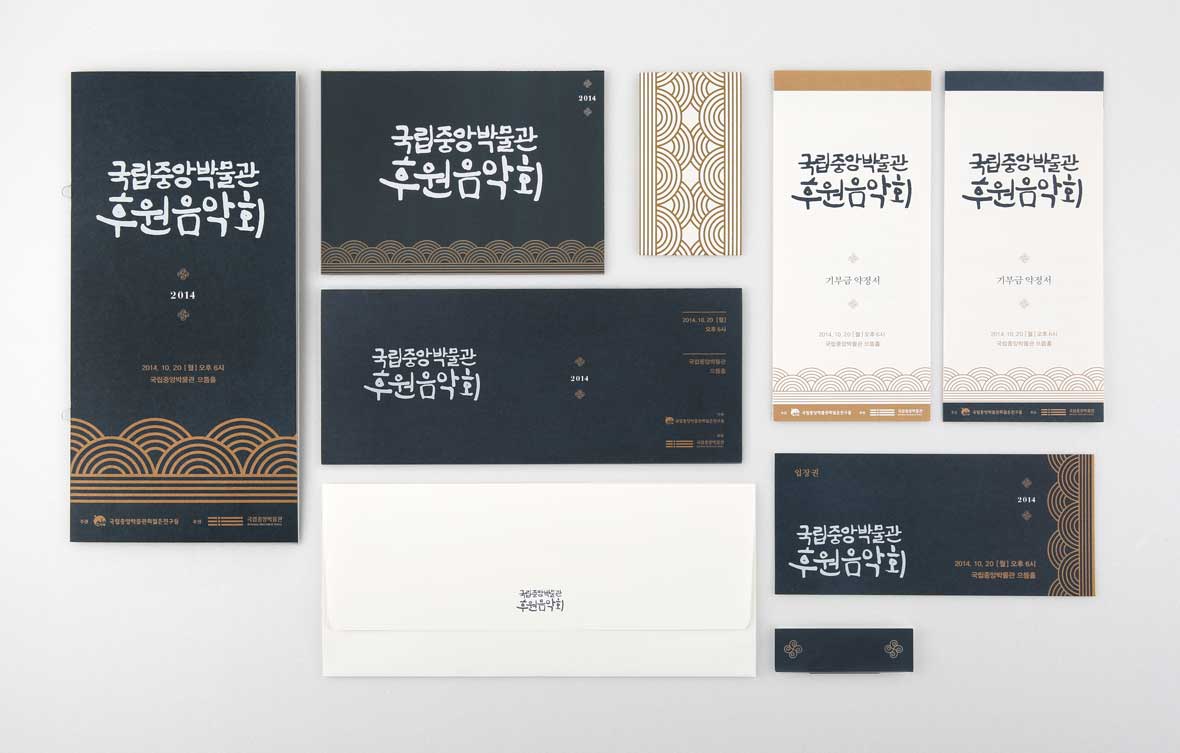 우리는 이러한 행사의 특징을 살리기 위해 ‘눈썹와편담장’을 재해석 한 전통적인 느낌의 패턴과 독특한 캘리그라피를 개발하였습니다. 이는 매우 성공적인 반응을 가져왔고 이 후로도 국립중앙박물관 후원음악회의 디자인을 계속하고 있습니다.