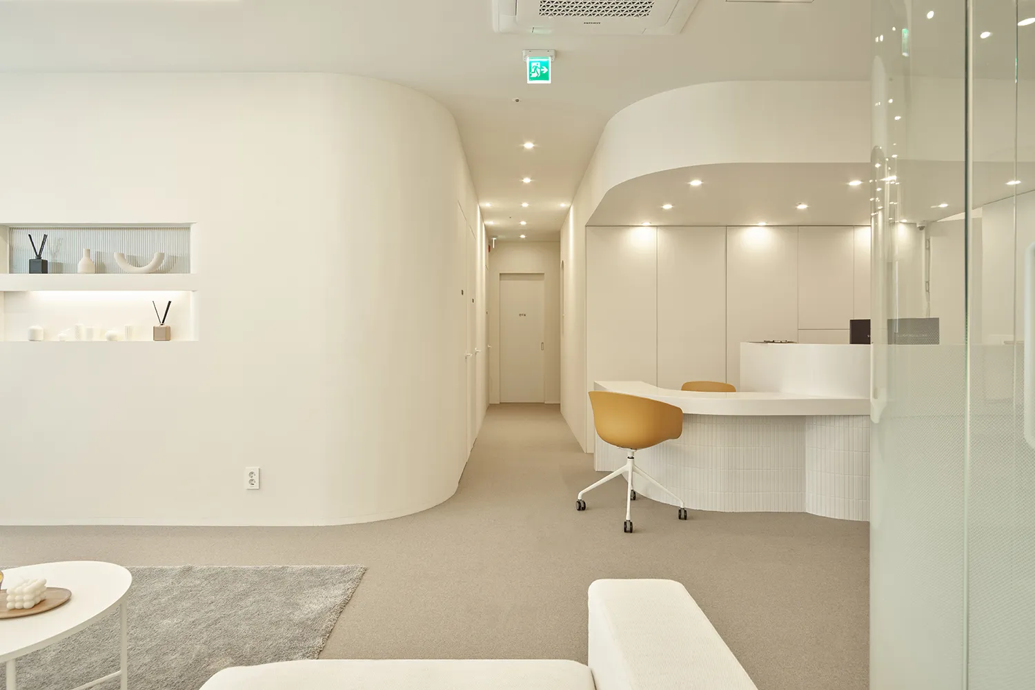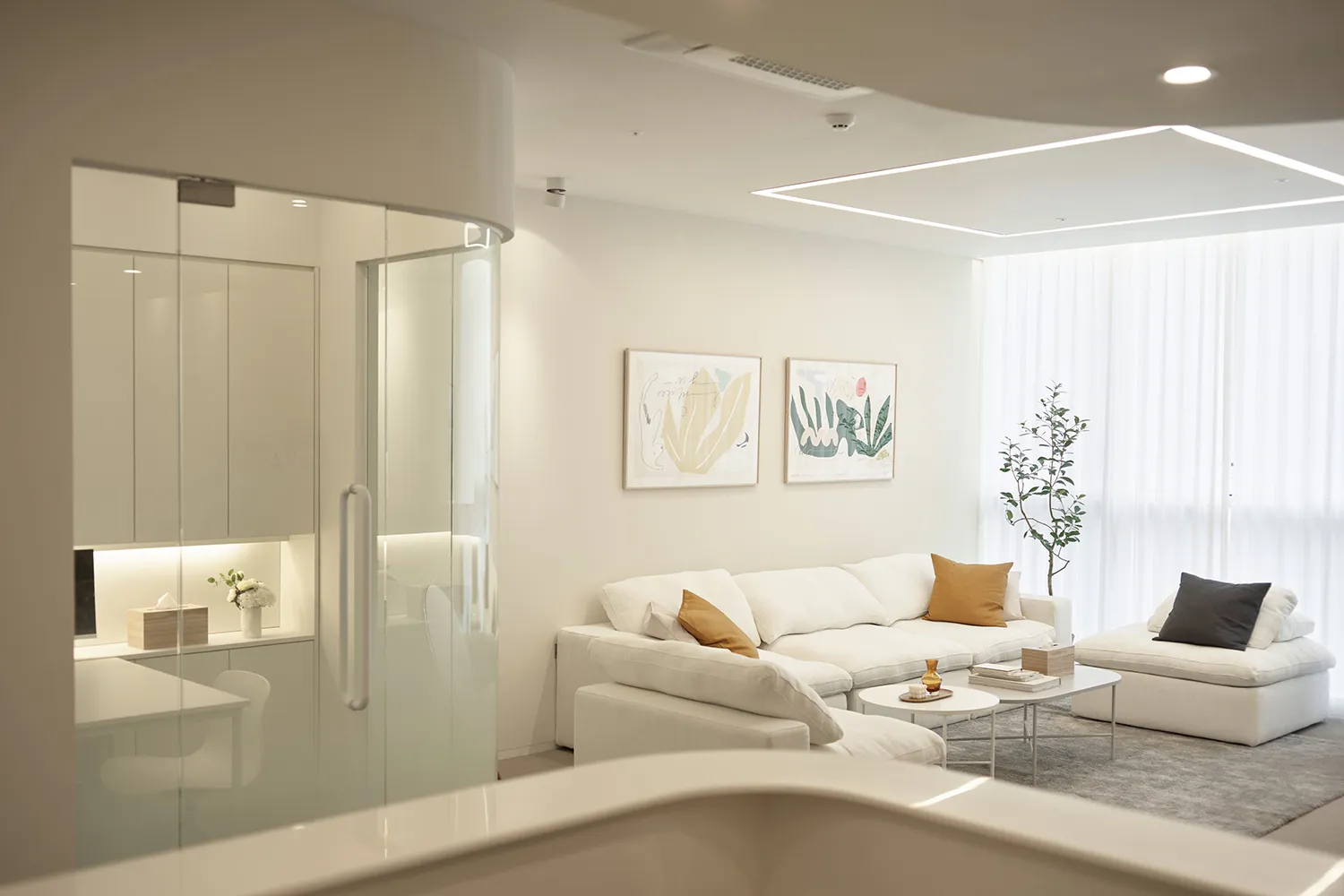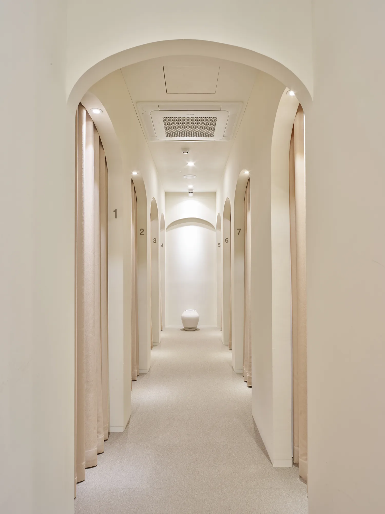 홀 공간은 편안하고 아기자기하게 꾸며진 거실처럼 꾸며져 있습니다. 여성이 즐겨 읽을 도서와 잡지를 비치해 놓았고, 페미닌한 스타일의 소품으로 디스플레이를 해 두었습니다. 한의원의 공간 곳곳에 아름다운 모란꽃으로 꽃꽂이가 되어 있습니다. 대기공간에 앉아 편안한 마음으로 기다리다 보면 진료실로 안내를 받습니다. 진료실은 아이와 함께 방문을 주부고객들을 위해 밝고 따뜻한 분위기로 설계를 하였습니다. 벽에 걸린 귀여운 그림들은 아이들의 시선을 사로잡기에 충분합니다. 원장님과의 진료 후 고객은 1인실의 치료실로 안내를 받습니다. 수이한의원의 치료실은 전부 1인 치료실로 설계되어 있습니다. 치료를 받는 시간만큼은 온전히 나만의 공간에서 나를 위한 시간을 보내실 수 있도록 섬세하게 설계하였습니다. 아치형의 문으로 이루어진 복도는 신비로우면서 특별한 느낌을 선사합니다. 따뜻한 불빛의 치료실에서 편히 치료를 받고 나면 더욱 건강하고 아름다워진 자신을 느낄 수 있을 것입니다.