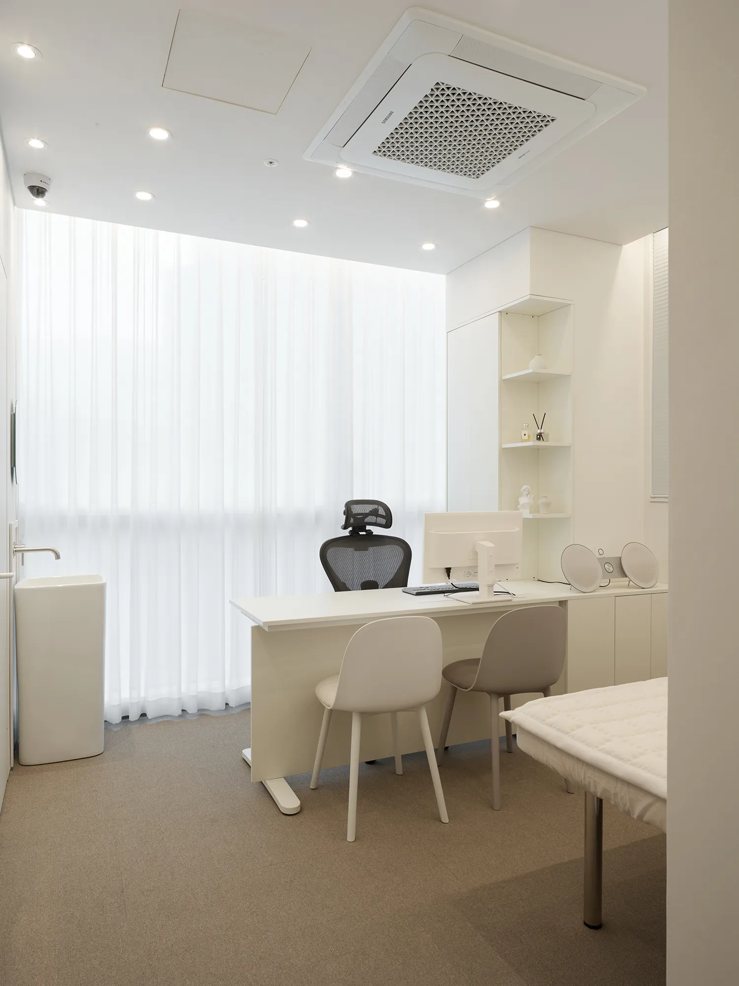 그리고 전 실을 1인 치료실로 만든 것도 원장님의 큰 선택이었습니다. 1인 치료실은 공간을 많이 차지하게 되어 공간대비 베드 수가 줄어들 수 밖에 없습니다. 그러나 수이한의원을 찾는 모든 고객들이 온전히 특별한 시간을 보내는 경험을 할 수 있도록 전 실을 편안한 1인 치료실로 세팅하기로 하였습니다. 이로 인해 고객들은 처음부터 끝까지 정말 남다르고 특별한 서비스를 받을 수 있게 되었습니다. 우리는 ‘원래 다들 이렇게 하니까’ 하는 스테레오 타입의 디자인에서 조금씩 벗어나고자 하는 시도를 조금씩 해왔습니다. 그것의 정점이 되어 준 곳이 바로 수이한의원이었습니다. 수이한의원을 찾은 고객들이 작은 서비스와 브랜드 경험 하나하나에 특별함과 감동을 느끼고 그들의 One pick 한의원으로 수이한의원을 선택하여 주었으면 하는 마음을 담아 디자인과 공사를 진행하였습니다. 뜻깊은 경험을 선물해 주신 수이한의원 원장님 내외분께 감사를 드립니다.