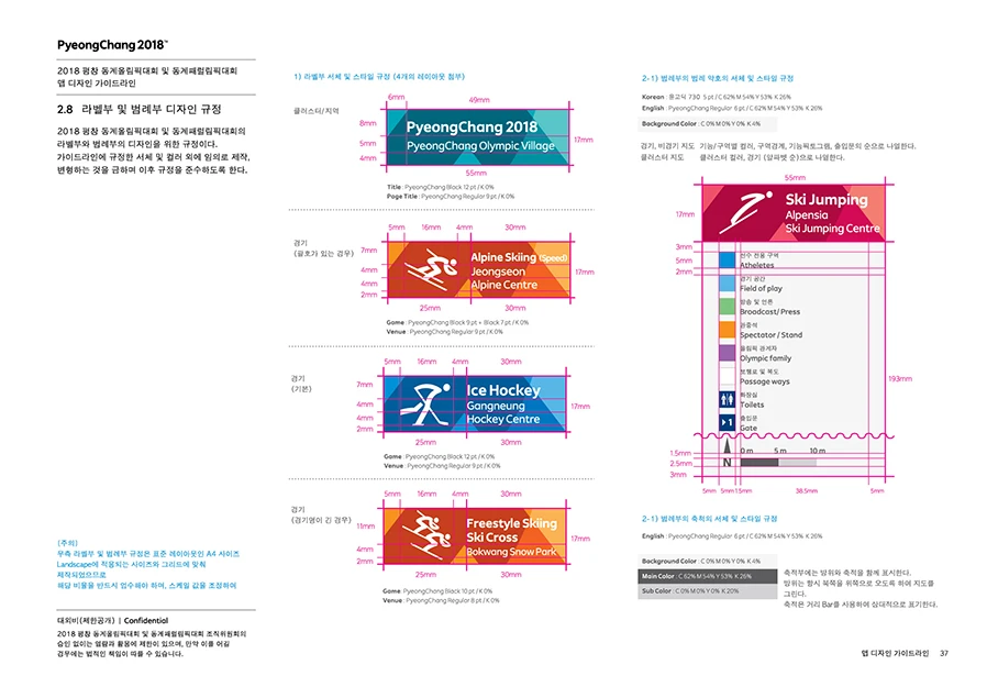 올림픽 개최를 위한 준비는 전쟁이었습니다. 그리고 우리는 약 8개월간(2개월이면 끝날 줄 알았던) 그 전선에 있었습니다. 평창올림픽에는 무수하게 많은 디자인 제작물이 필요했고 그 제작물들은 모두 일관된 규칙에 의해 통일감있게 그려져야 했습니다. 그렇게 되기위해 꼭 필요한 것들이 매뉴얼 혹은 디자인 가이드라인 입니다.