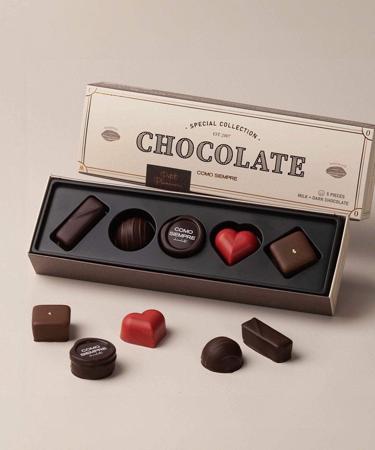 Como Siempre 는초콜릿이 단순한 식품이 아닌 아름답고 품격있는 선물로 자리잡을 수 있도록 노력하는 브랜드 입니다. 2012년 가로수길에서 수제 초콜릿 카페로 시작하여 현재는 최고의 품질을 자랑하는 초콜릿 브랜드로 자리매김하며 꾸준히 사랑받고 있습니다. 꼬모쎔쁘레는 스페인어로 '늘 변함없이' 라는 뜻을 지니고 있습니다. 이러한 꼬모쎔쁘레의 의미처럼 여러분들에게 늘 변함없는 마음으로 최상의 초콜릿을 선보일 것을 약속드립니다. 우리는 달콤한 초콜릿 한 조각이 가져오는 변화를 믿습니다. 지금, 마음을 전하고 싶다면 꼬모쎔쁘레의 초콜릿을 선물하세요. 사랑스러운 기적이 일어날지도 모르니까요. Good things will happen!