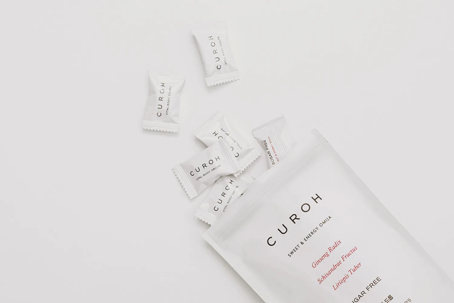 세련된 Taste를 지닌 고객과 저자극 제품을 추구하는 고객, 과민해진 몸에 Calm-down한 시간을 필요로 하는 고객들이 CUROH의 타겟 고객입니다. ‘한방제품은 촌스러워’ 라는 이미지를 탈피시키기 위해 해외의 여러 자연주의 브랜드 이미지를 레퍼런스로 사용하였습니다. CUROH의 제품은 세가지 원칙으로 만들어집니다. 세련된 언어와 디자인의 사용, 가치있고 안전한 원료와 유니크한 제형, 편안하고 감각적인 제품 경험. 이 세가지 원칙이 우리가 설정한 타켓층을 위한 제품이 되고, CUROH를 다른 한방 제품들과 차별화시켜주는 중요한 요소가 됩니다. CUROH는 현재 한방처방에서 영감을 받은 치유 캔디와 스킨케어 제품을 시작으로 브랜드의 입지를 하나씩 다져나가고 있습니다.