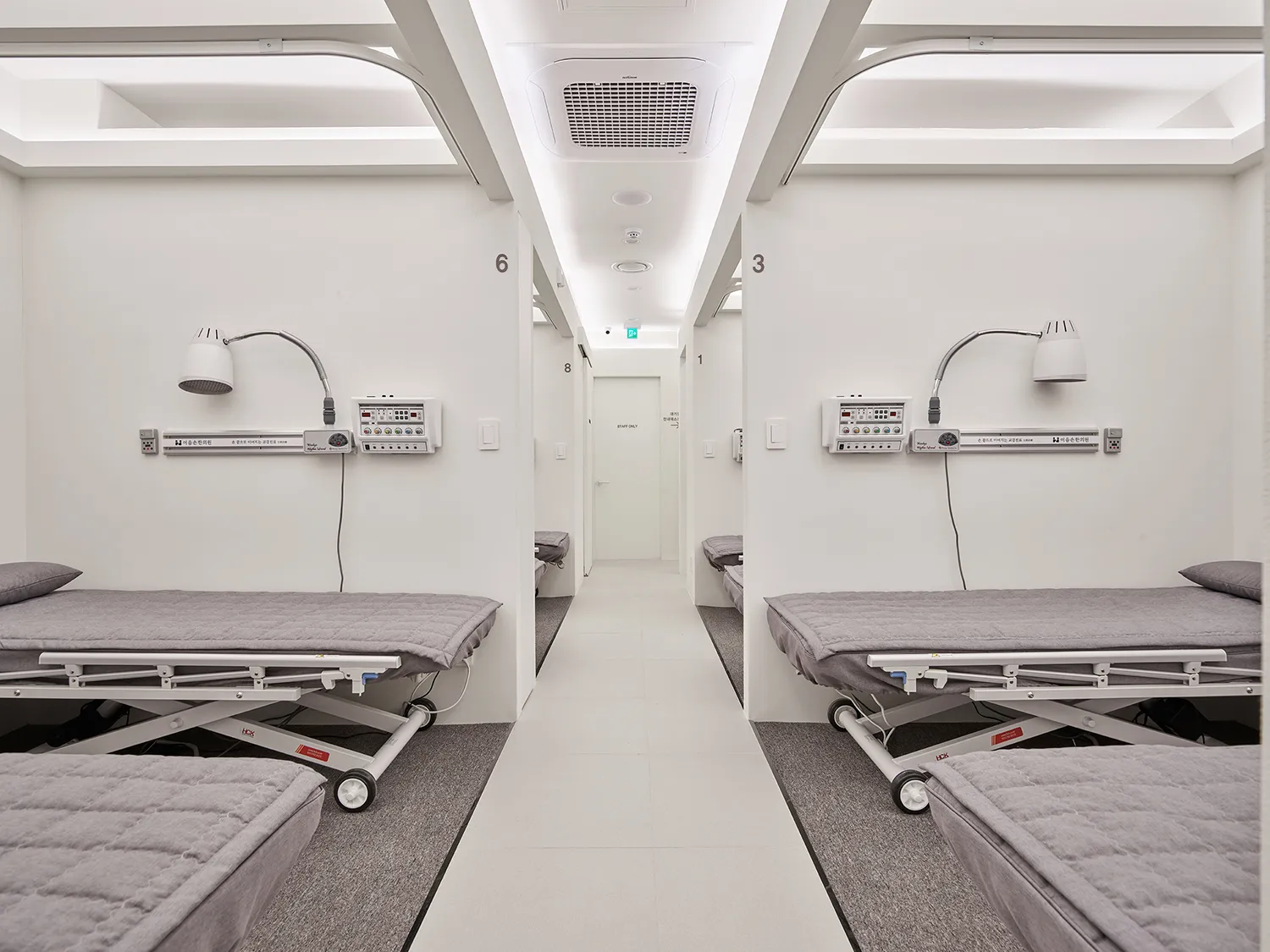 이음손한의원은 장식이나 소품이 적습니다. 사람이 많이 오는 공간이 되어 사람들이 채워주는 인테리어를 만들고자 했기 때문입니다. 많은 사람들이 오고가는 봉천동의 사거리에 위치한 이음손한의원의 특성상 많은 환자분들을 만날 수 있도록 충분한 수의 베드를 들일 수 있도록 공간배치에 신경을 썼고, 베드의 간격이 좁게 느껴져 번잡한 느낌이 들지 않게 하기 위해 설계에 고민에 고민을 더하였습니다. 불필요한 장식적 요소로 공간을 빼앗기지 않고, 충분한 수납과 꼼꼼한 공간사용이 이루어지도록 설계하였습니다. 사람들로 가득하고 그들의 손을 따뜻하게 만지는 원장님들의 섬세한 진료가 이루어지는 이음손한의원은 이러한 과정으로 설계되고 디자인되었습니다.