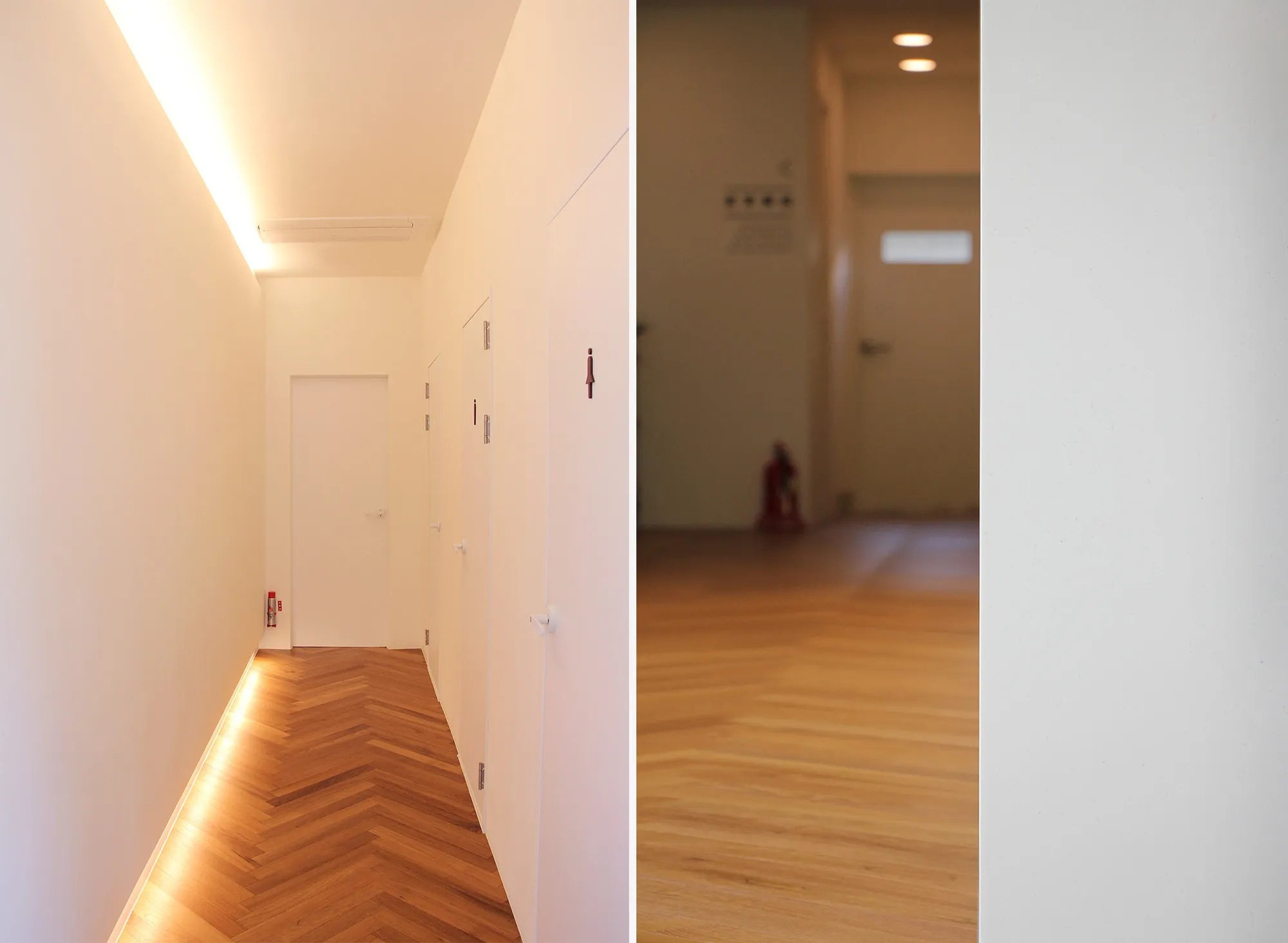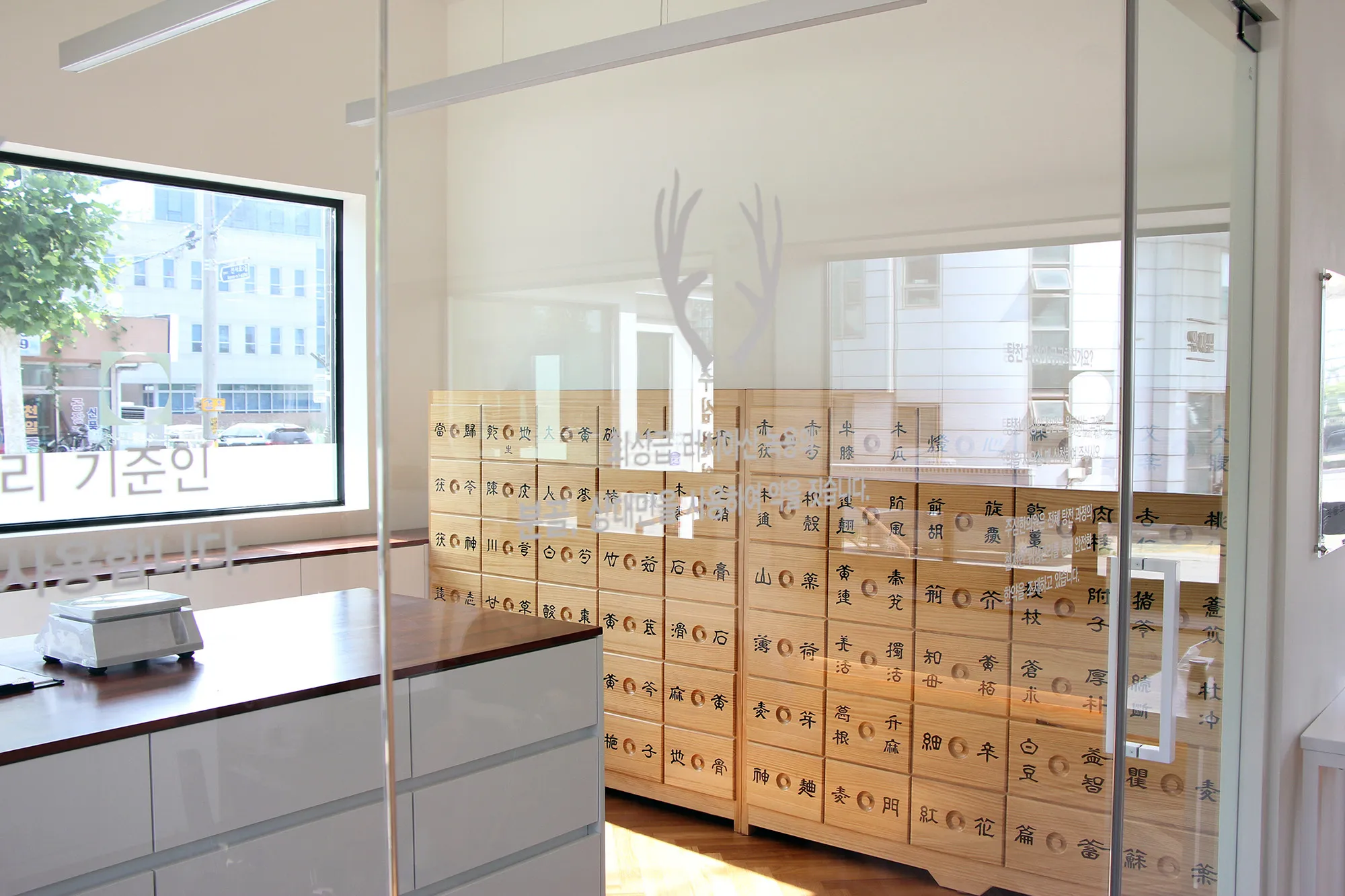 그러나 공사 전 우리의 약속대로 모든 과정은 잘 끝났습니다. 건물 외부와 내부에 아이보리 빛 컬러가 새로 입혀졌을 때 한의원 식구를 비롯한 모두가 감동하였습니다. 바닥 전체에 월넛 헤링본 마루가 깔렸을 때, 실내에 불이 켜지고 사이니지 그래픽을 모두 디자인하여 아크릴로 따서 붙였을 때, 멀바우로 마감된 가구들이 모두 들어왔을 때… 과정은 힘들었지만 모든 결과물들은 흡족하였습니다. 새 한의원에서 첫 진료를 하셨던 날 원장님께선 ‘마치 계속 진료를 했던 병원처럼 모든게 익숙하고 편안하다.’고 말씀하셨습니다.